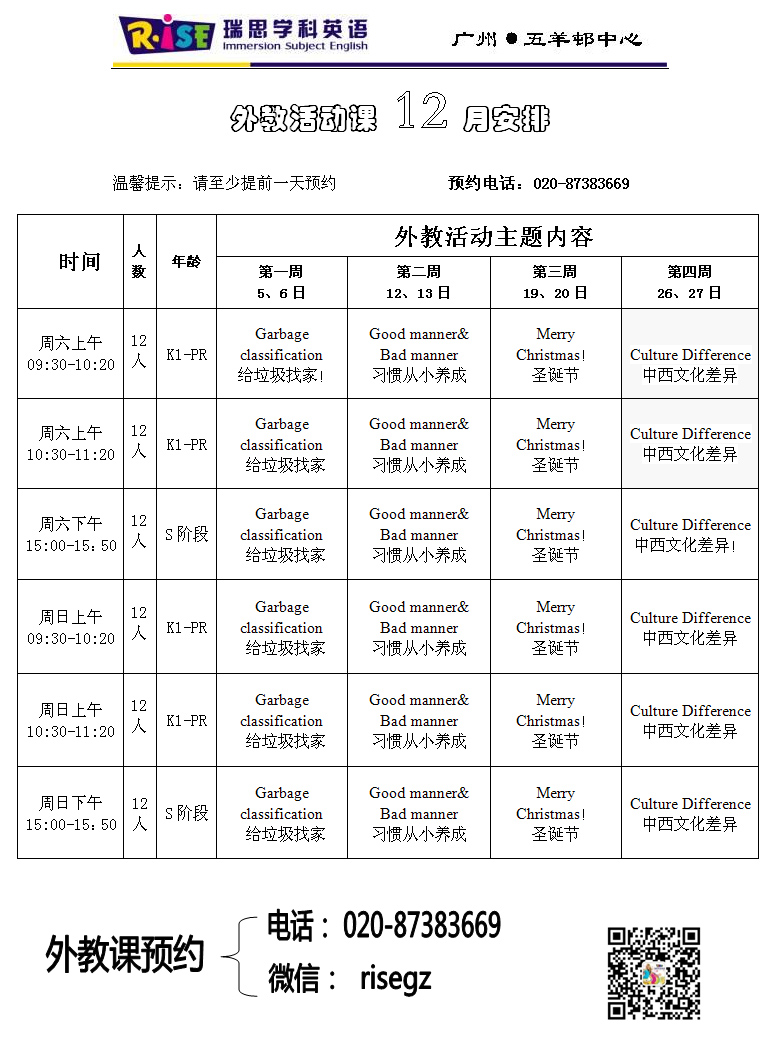 2015年12月瑞思少儿英语外教活动课